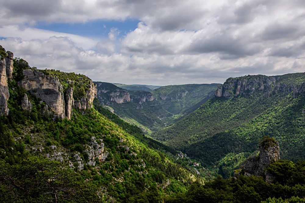 Plus au sud apparaissent les Causses, grands plateaux calcaires façonnés par l’érosion. Ces paysages minéraux contrastent avec les vallées profondes creusées par les rivières.