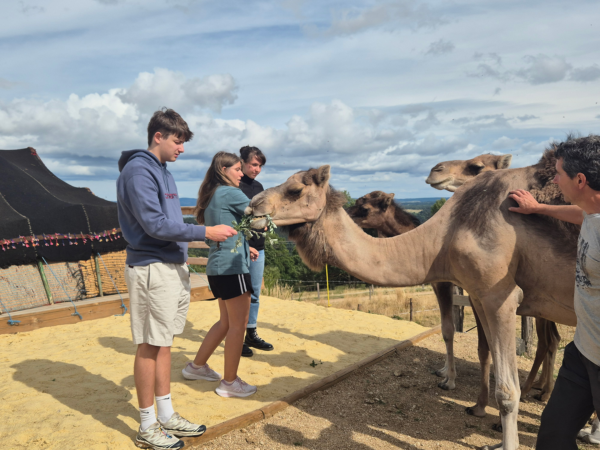 À quelques kilomètres seulement de notre camping vers Auroux, la ferme Dromazère propose une visite originale autour d’un animal étonnant dans ce paysage de moyenne montagne : le dromadaire. Dans ce cadre naturel inattendu, les visiteurs peuvent découvrir ces animaux fascinants et mieux comprendre leur mode de vie. La visite se déroule librement ou guidée autour des enclos où vivent plusieurs dromadaires. Curieux et paisibles, ils peuvent être observés de près et approchés. Des panneaux pédagogiques et un espace d’exposition permettent également d’en apprendre davantage sur cet animal emblématique des peuples nomades. Cette rencontre surprenante crée un véritable pont entre les paysages de Lozère et l’univers du désert, offrant une expérience dépaysante et mémorable pour petits et grands.
