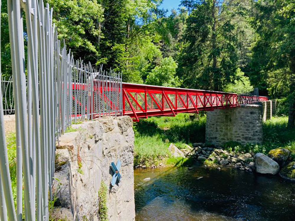 À seulement 3/4 kilomètres du camping, le village d’Auroux offre une atmosphère très différente mais tout aussi authentique. Niché au-dessus de la rivière Chapeauroux, au cœur des paysages de Margeride, ce petit village entouré de prairies et de forêts a conservé son charme rural. Sa place centrale, sa halle et la petite chapelle des pénitents témoignent de la vie villageoise traditionnelle. Aux alentours, les paysages de moyenne montagne alternent entre prairies, ruisseaux et forêts profondes ponctuées de blocs de granit sculptés par le temps.