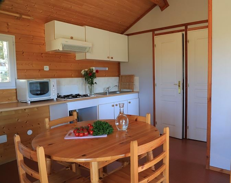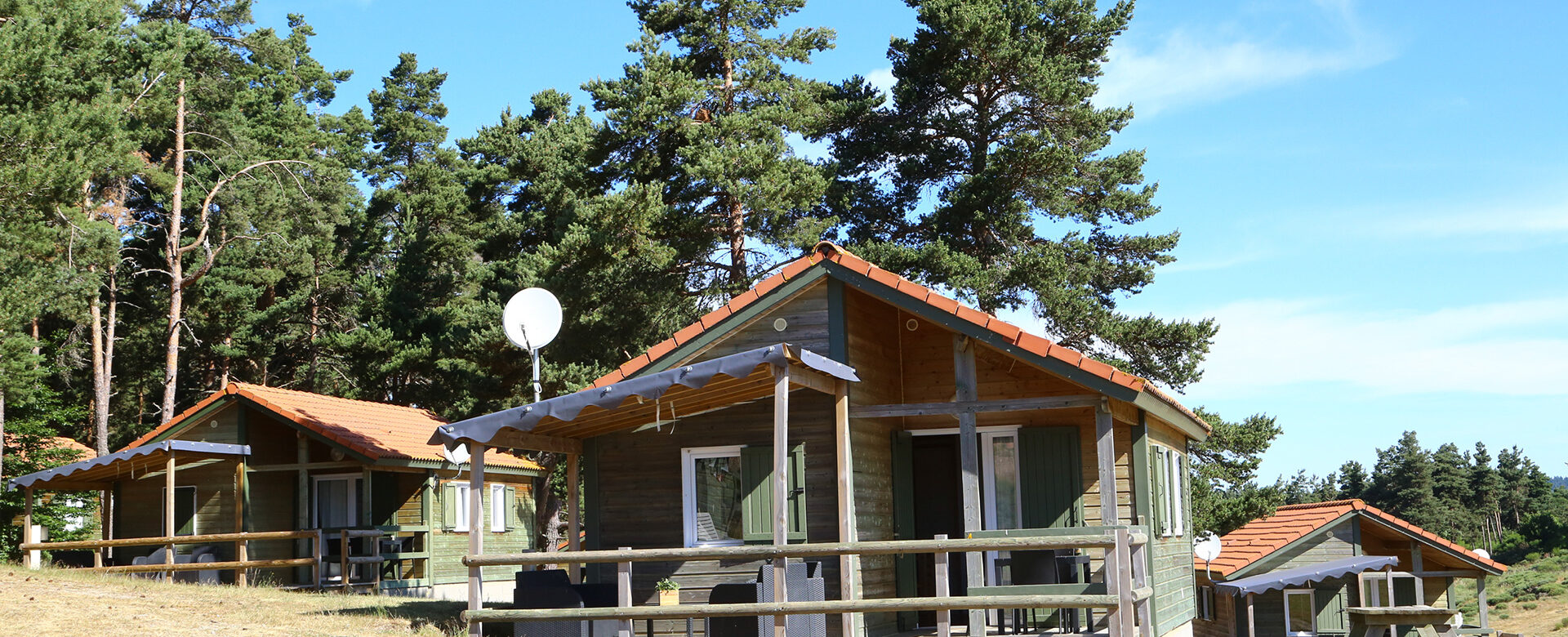 Chaque chalet bénéficie d’un bel espace naturel autour de l’hébergement, offrant un cadre agréable où l’on profite du calme et de la tranquillité tout en restant à proximité des services du camping et de la piscine. Leur architecture en bois et leur implantation sous les pins donnent à ce petit village une atmosphère simple et authentique, très appréciée des familles.