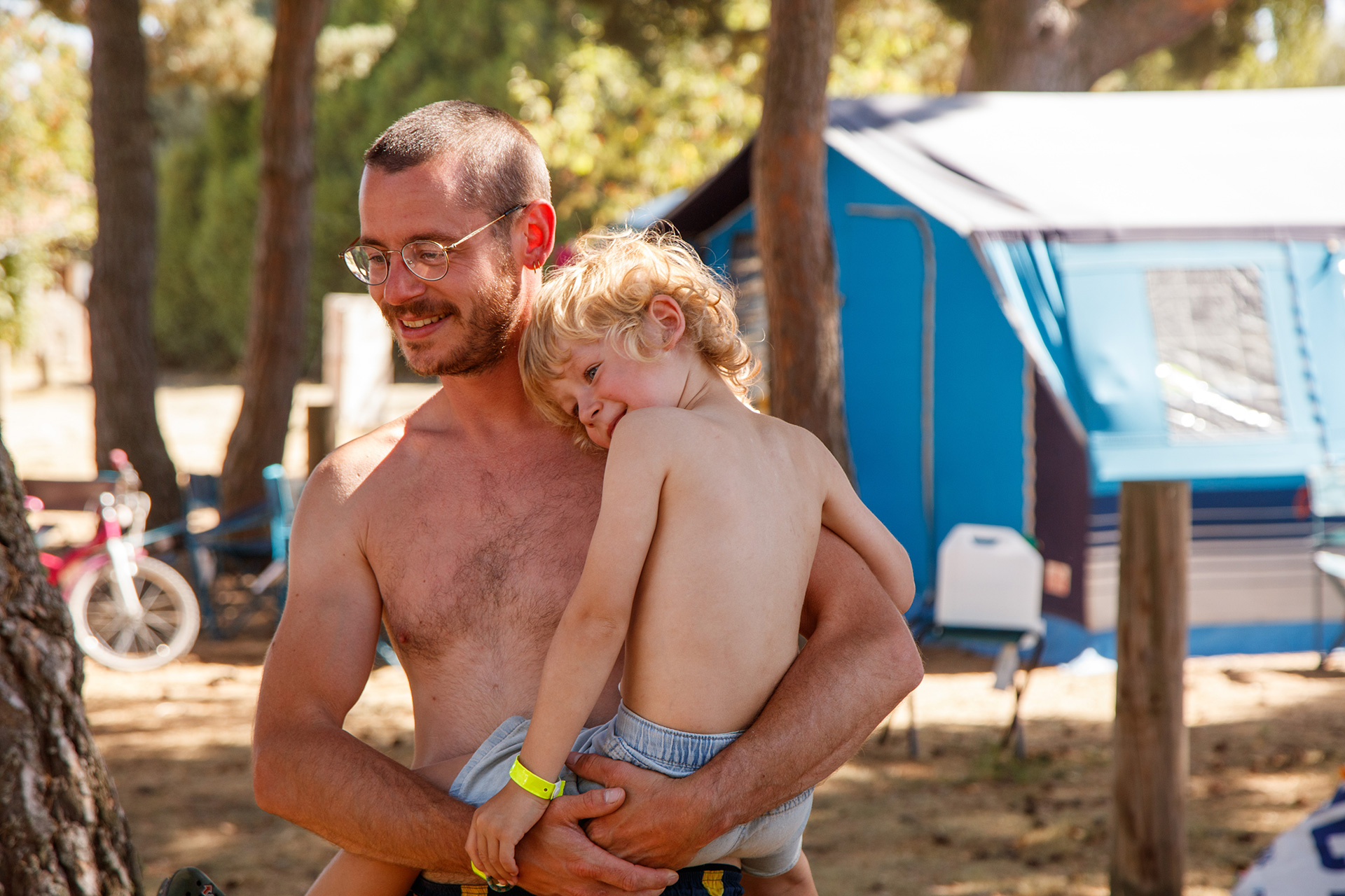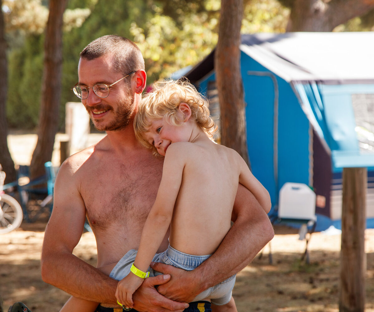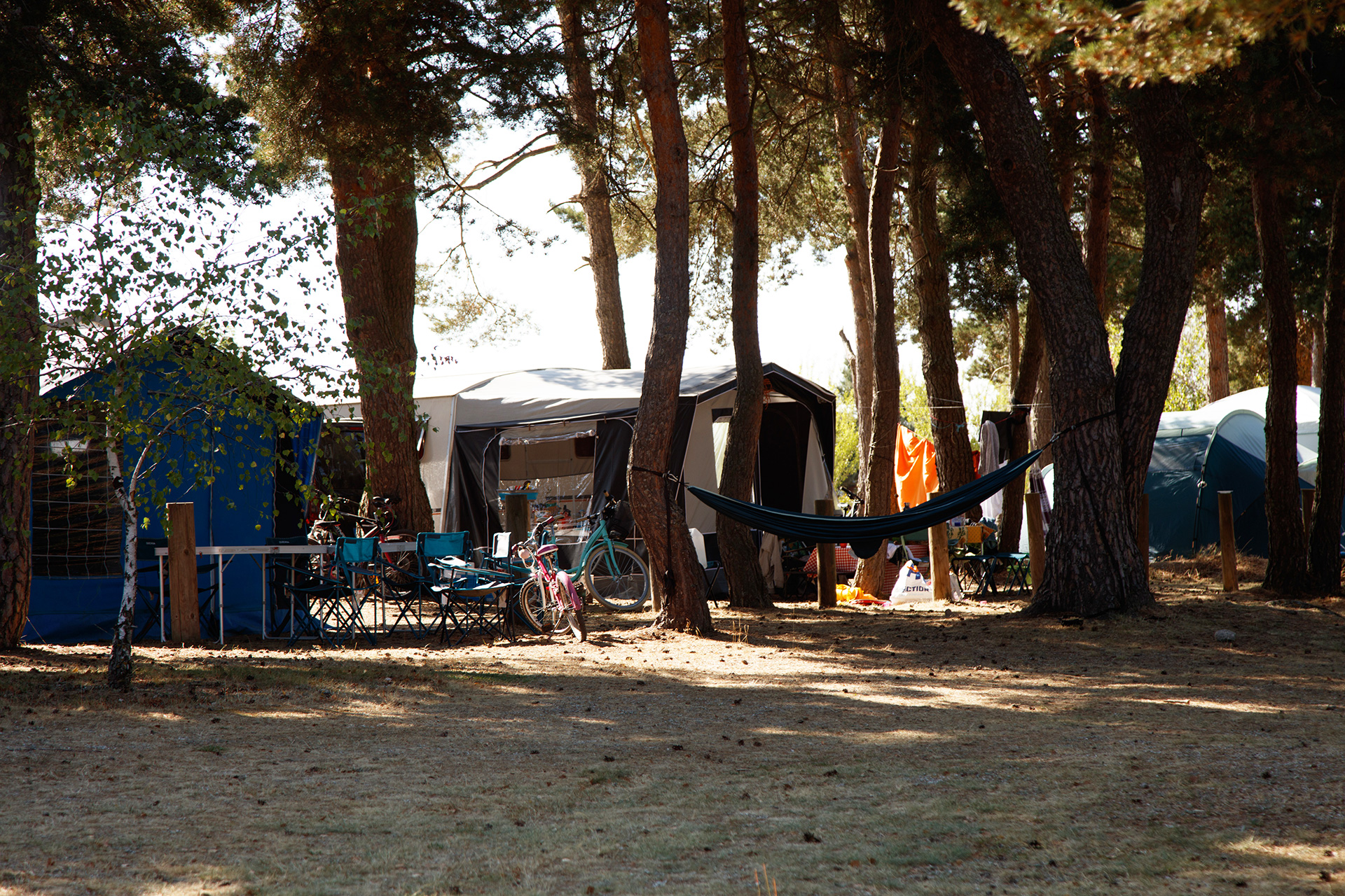 On choisit son coin : à l’ombre des pins ou au soleil, au calme ou plus proche de la vie du camping. Les journées s’organisent librement .