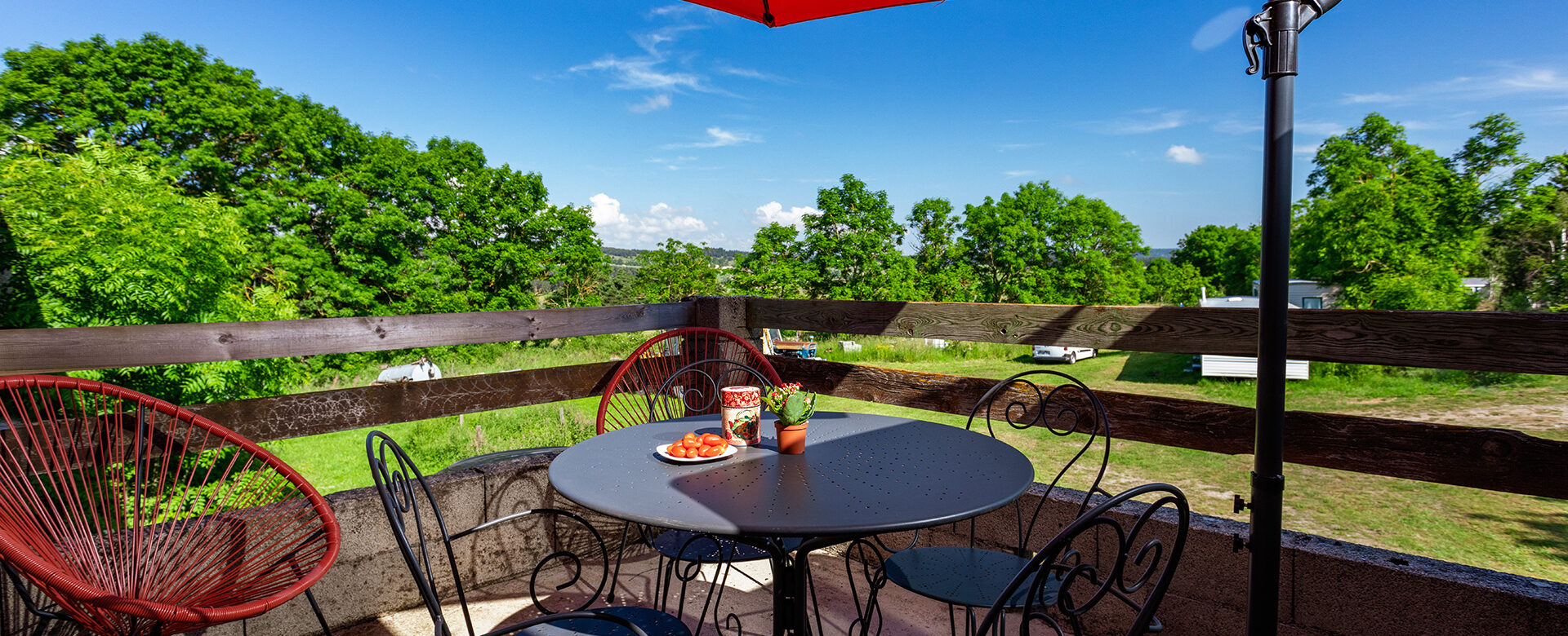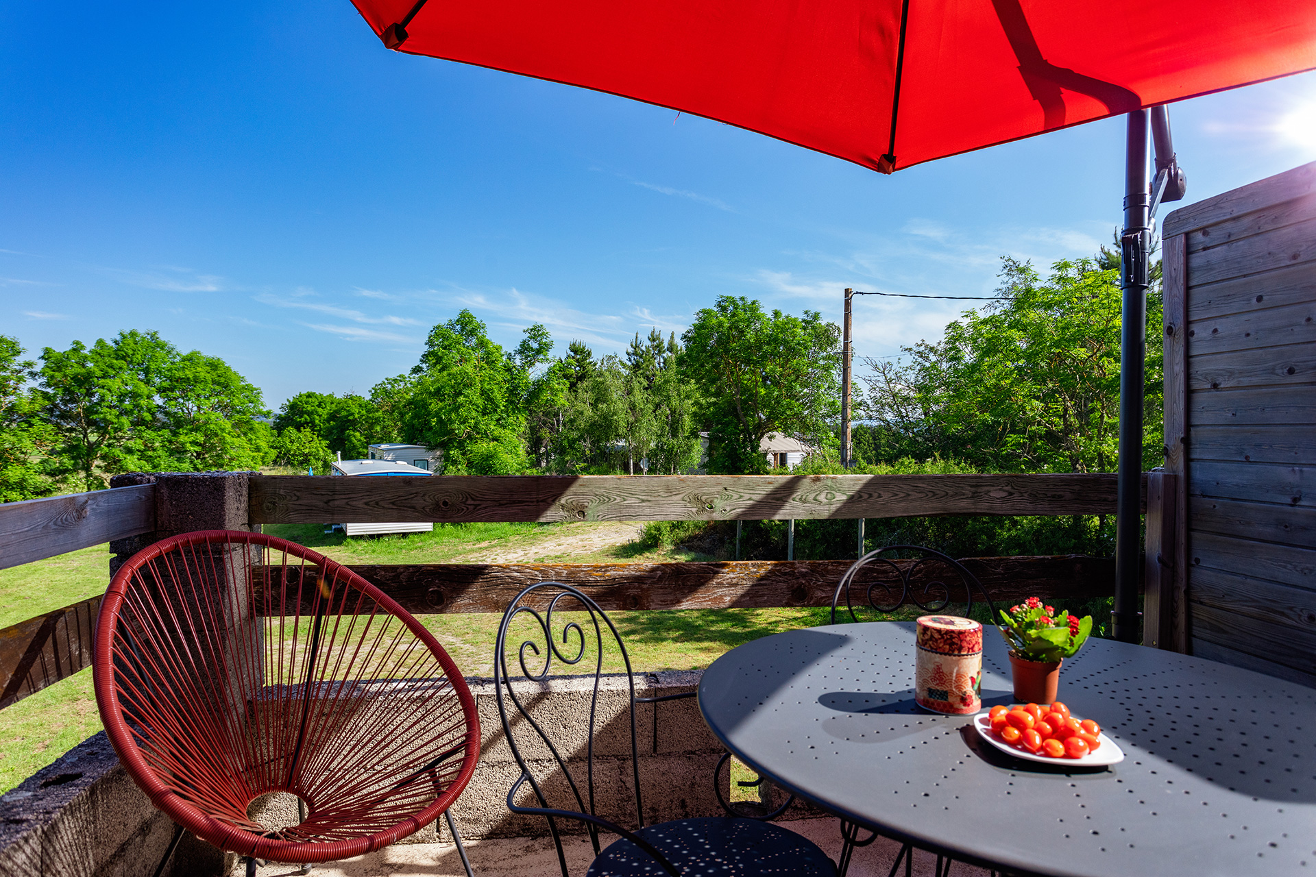 Ici, on profite d’un espace à soi tout en ressentant la vie autour. Depuis la terrasse, on profite de la vue sur la campagne, des voix, des rires, des passages discrets… puis l’on se retrouve dans son propre cocon. Les journées se déroulent naturellement, entre moments partagés et instants plus calmes, dans une ambiance simple, vivante et profondément reposante.