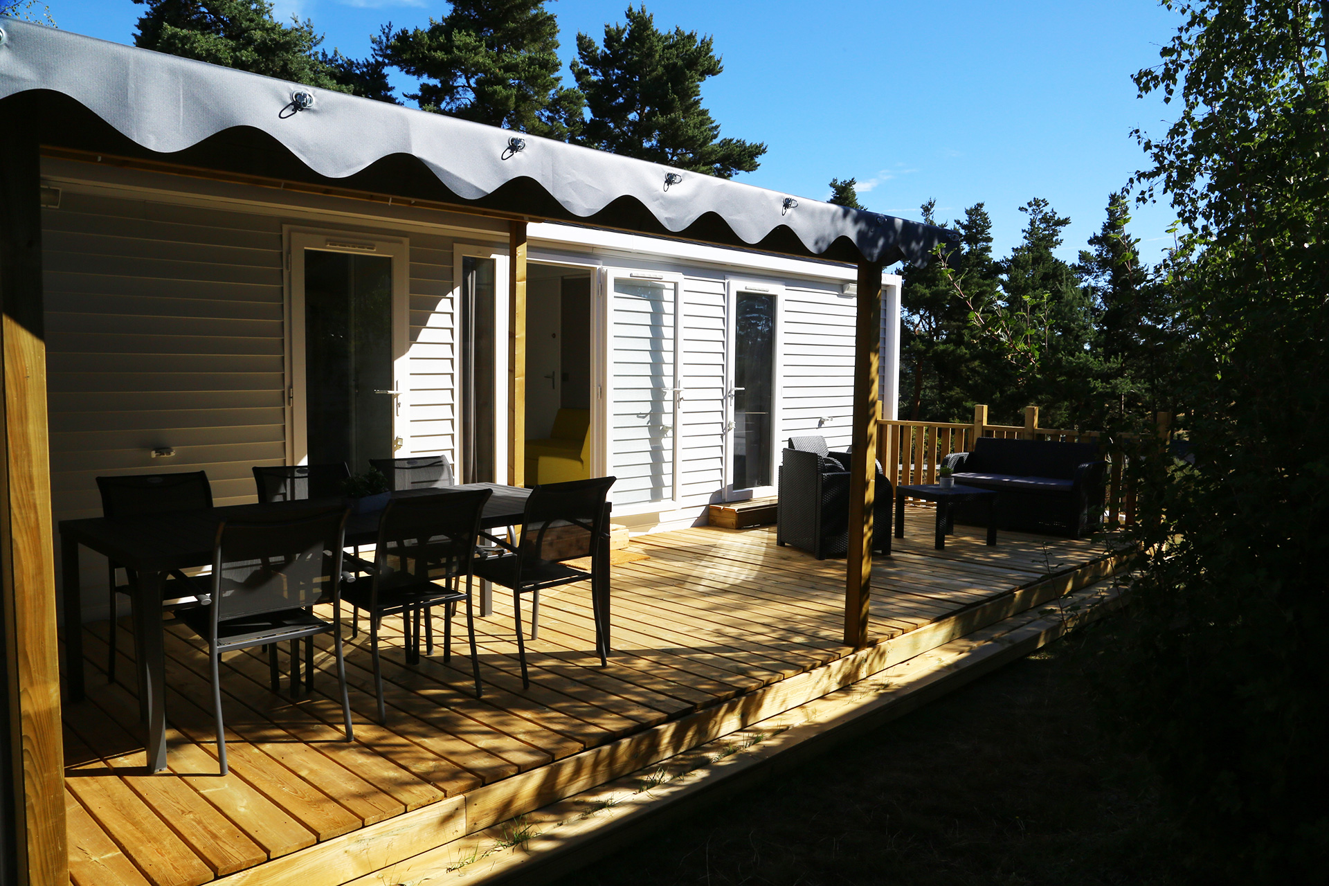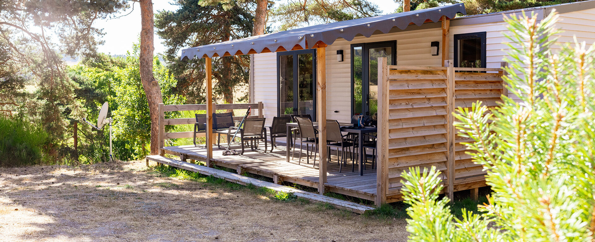 Nous vous proposons différentes gammes de mobil-home en Lozère, de 27 à 35 m², tous équipés de terrasses spacieuses de 15 à 24 m², pour profiter pleinement de vos vacances en extérieur.