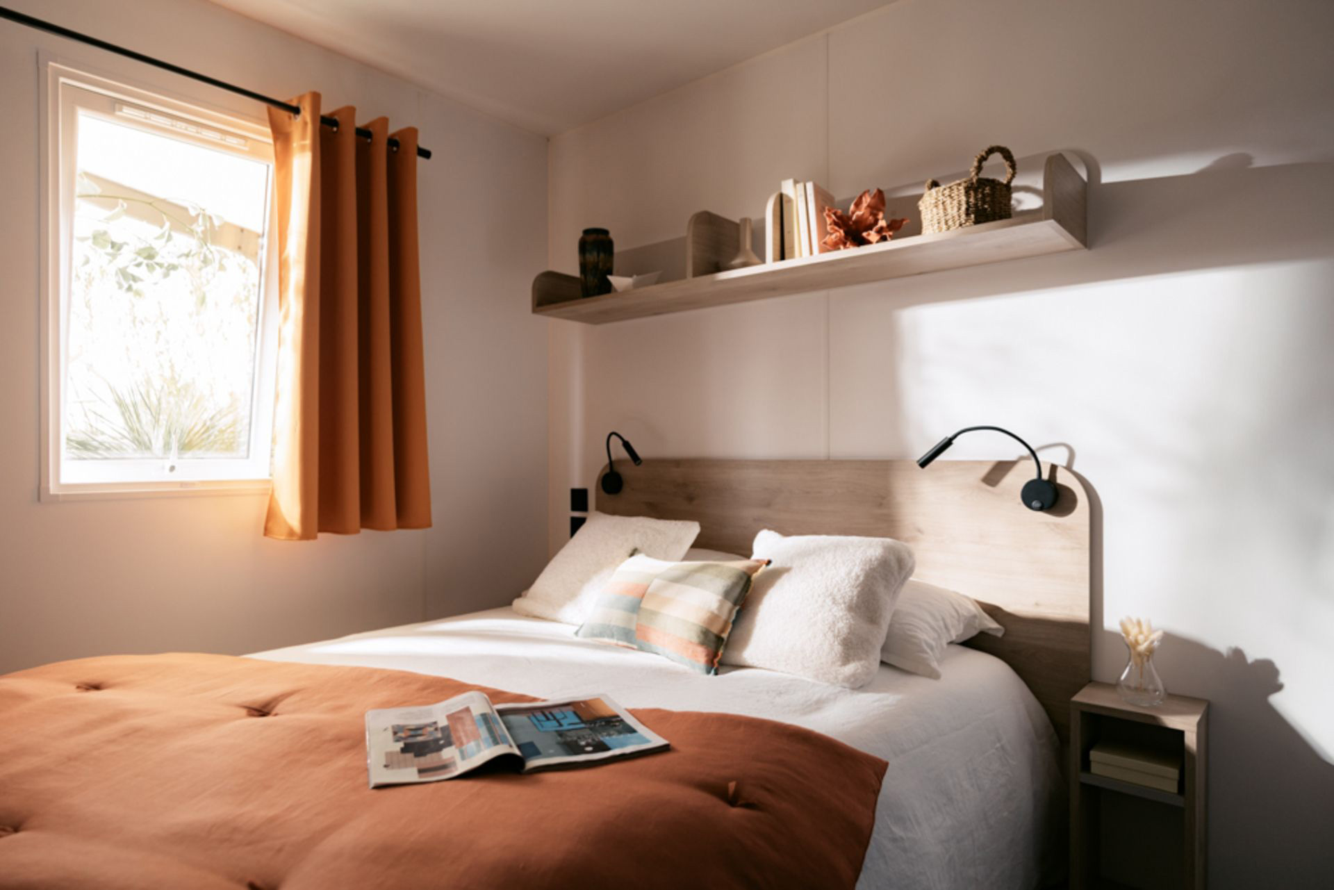 L’espace nuit comprend deux chambres : une chambre avec un lit double et une seconde chambre avec deux lits simples, idéale pour les enfants. La salle de bain et les toilettes séparées apportent un confort supplémentaire pour la vie quotidienne.